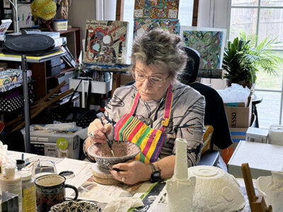 This is both a process of discovery and a form of communication. Whether through Ceramics, Painting, Collage or Printmaking, I aim to create pieces that resonate emotionally and intellectually, offering space for the viewer to find their own meaning.